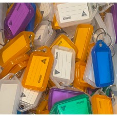 These strong hinged plastic key tags have a protective window to cover the removable paper insert. Available in several transparent colours. Brilliant option for a robust key management system.