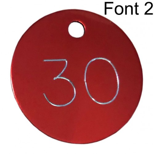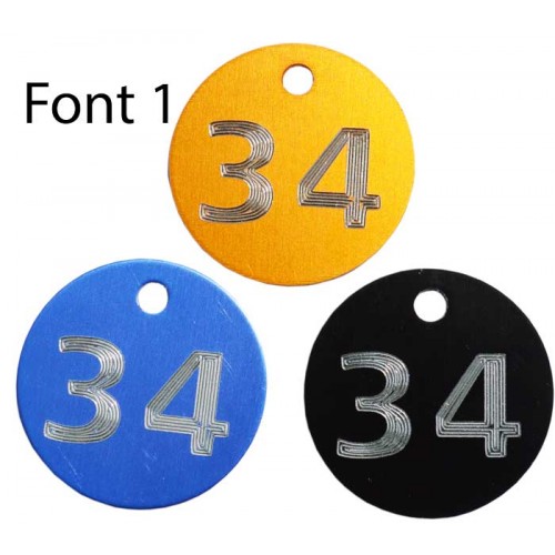 Aluminium disc tags engraved with numbers (Sequential and non-sequential) or text of your choice. In a selection of anodised colours. Engraved to show the self-coloured aluminium/silver colour beneath. Can be engraved one side or both